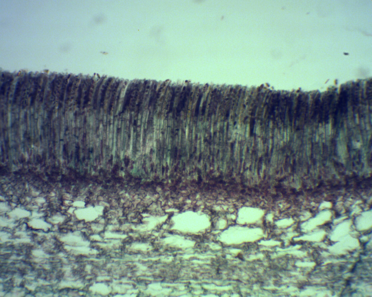 pezize (ascomycete) CT, hymenium with asci and ascospores