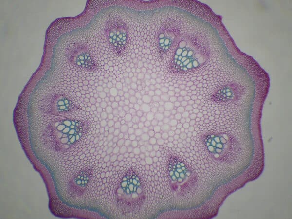 353B – Préparation microscopique de tige de dicotylèdone secondaire, structure vasculaire dicontinue (clématite ou aristoloche) CT